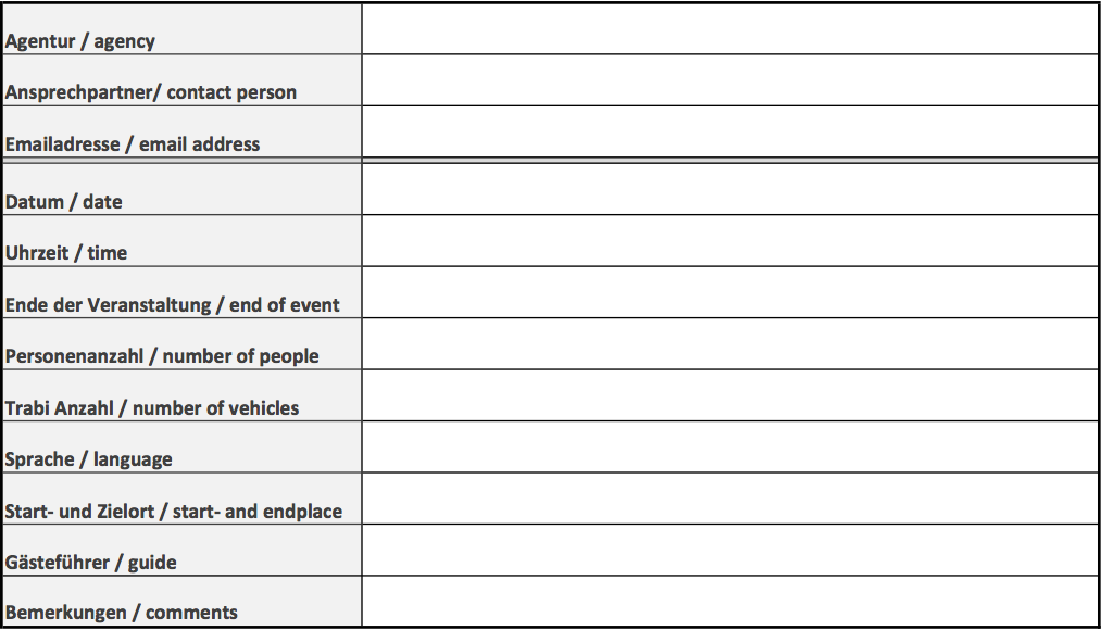 Berlin: berlin@trabiworld.com | Dresden: dresden@trabiworld.com